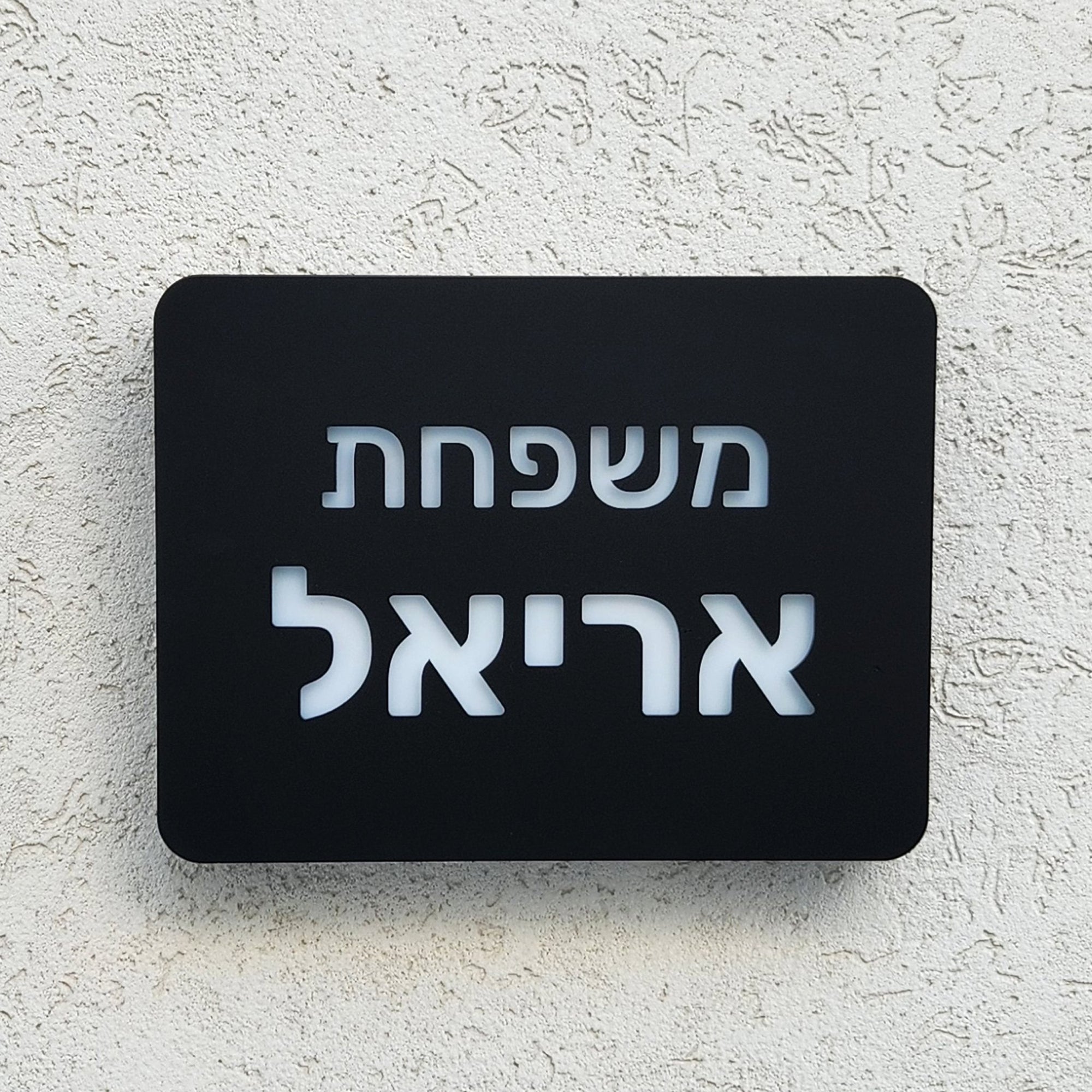 שלט מואר שם משפחה לבית פרטי עם תאורה ומנגנון כיבוי אוטומטי ביום - צבע שחור מט