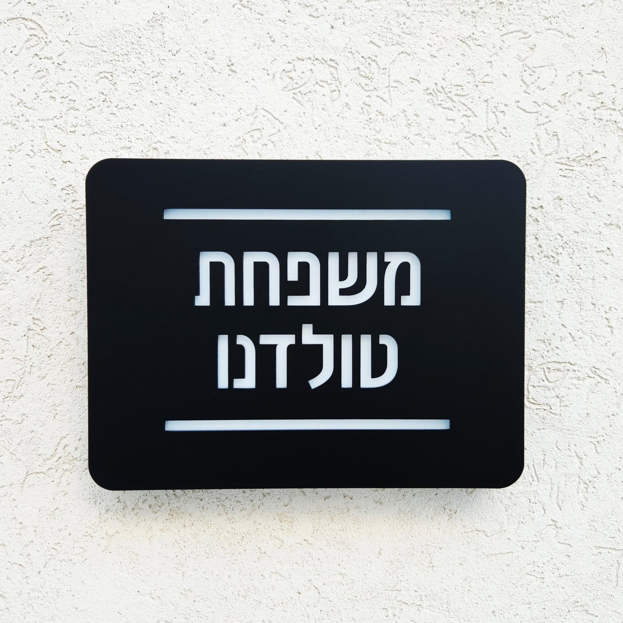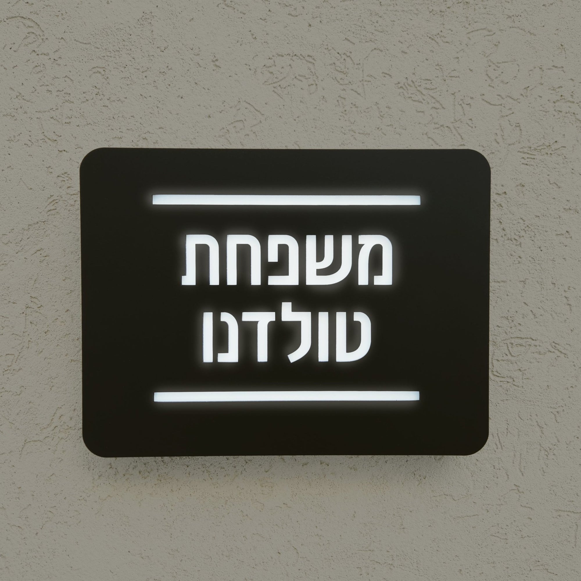 שלט מואר שם משפחה לבית פרטי עם תאורה ומנגנון כיבוי אוטומטי ביום - צבע שחור מט