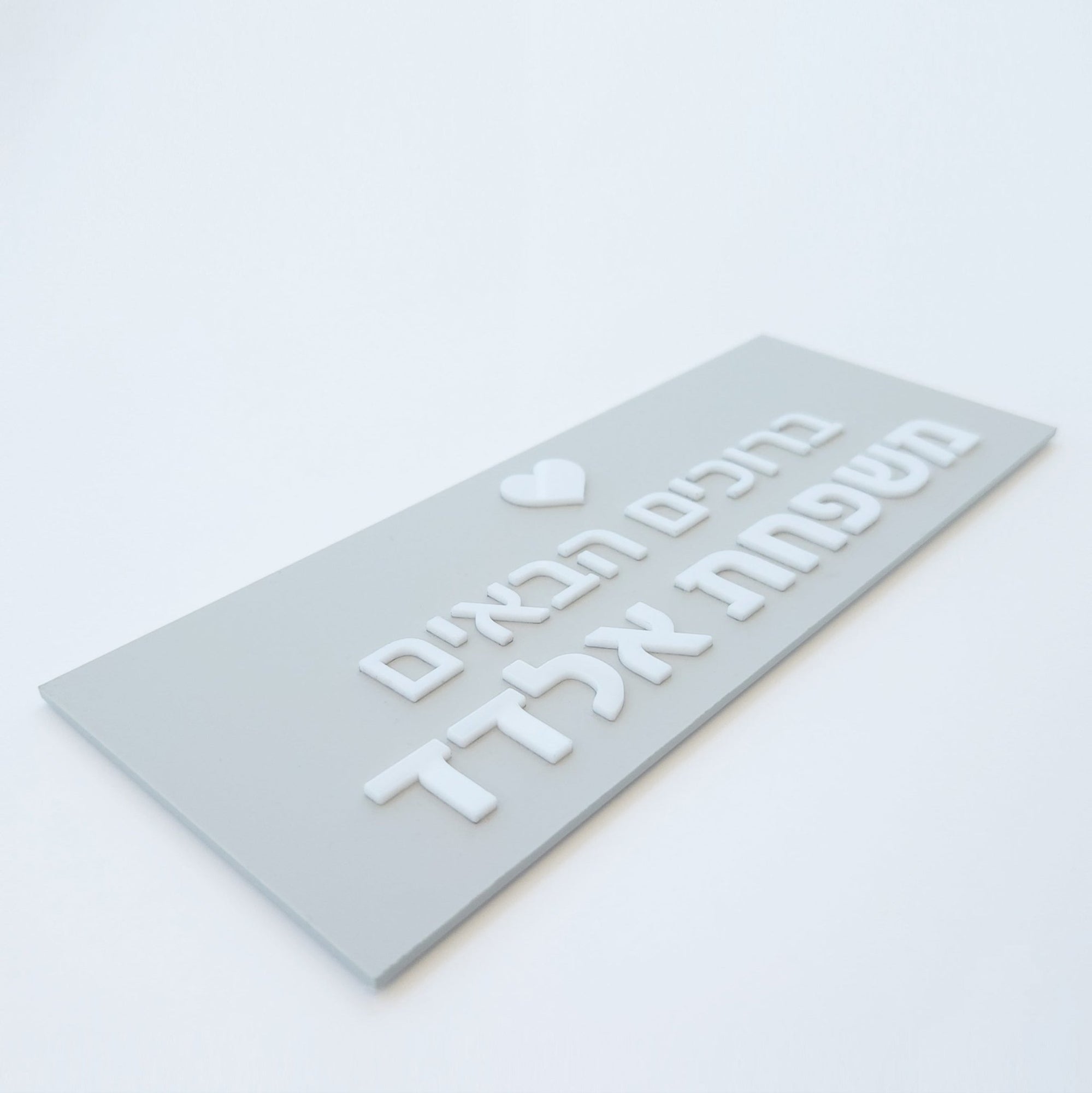 שלט לדלת ברוכים הבאים לבית דמוי בטון בעיצוב אישי - דגם אלדד