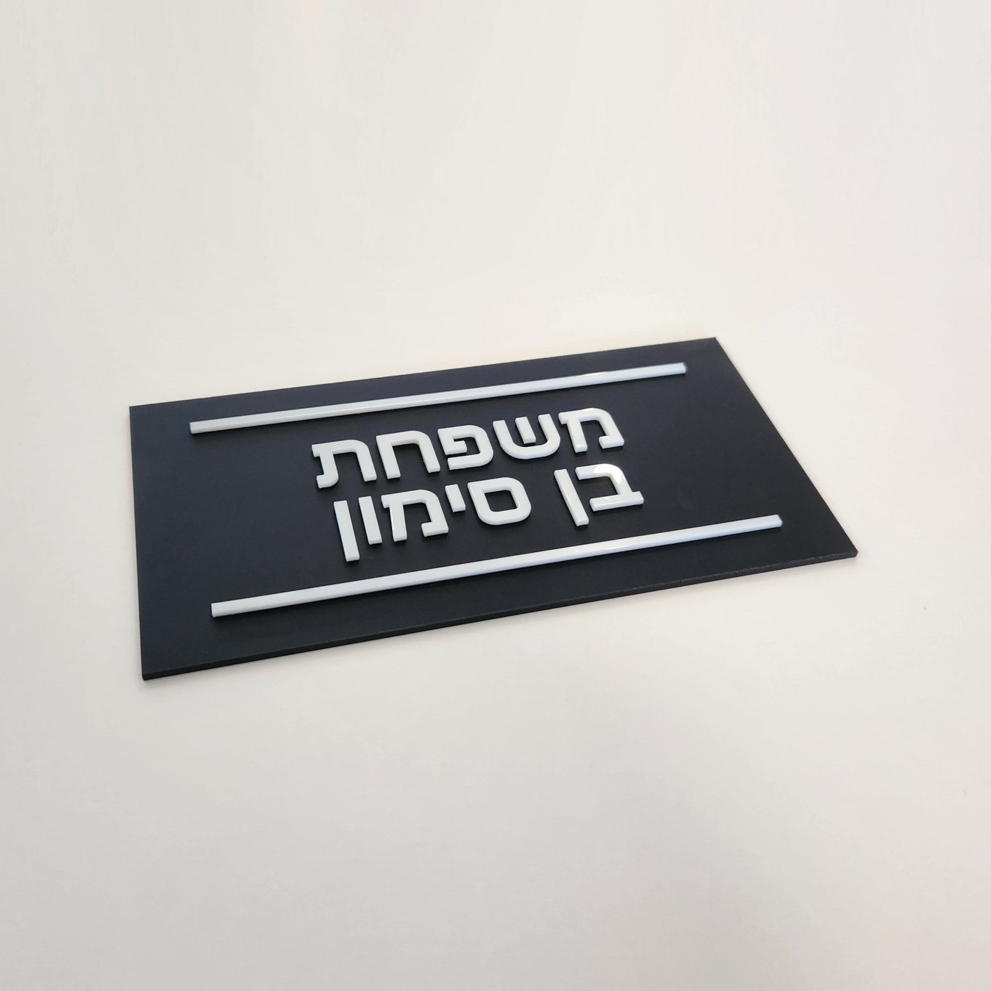 שלט שם משפחה בצבע שחור מט עם אותיות בולטות בצבע לבן