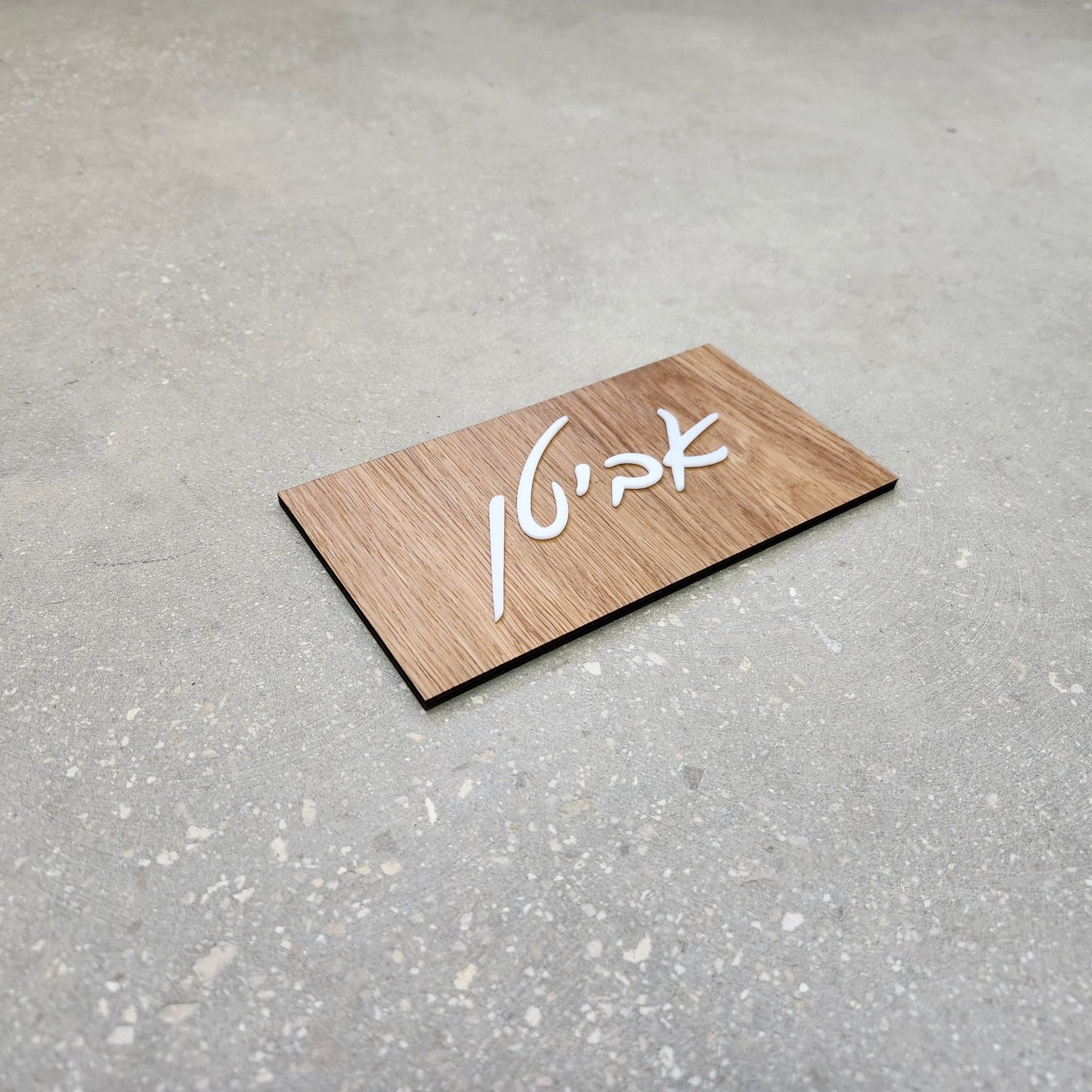 שלט שם משפחה מעץ עם אותיות בולטות בצבע לבן