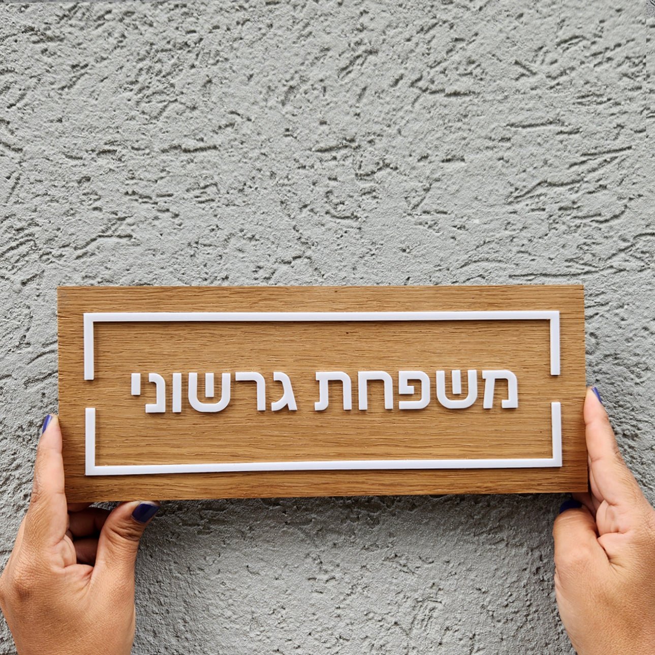 שלט לדלת כניסה לבית מעץ בעיצוב אישי - דגם גרשוני