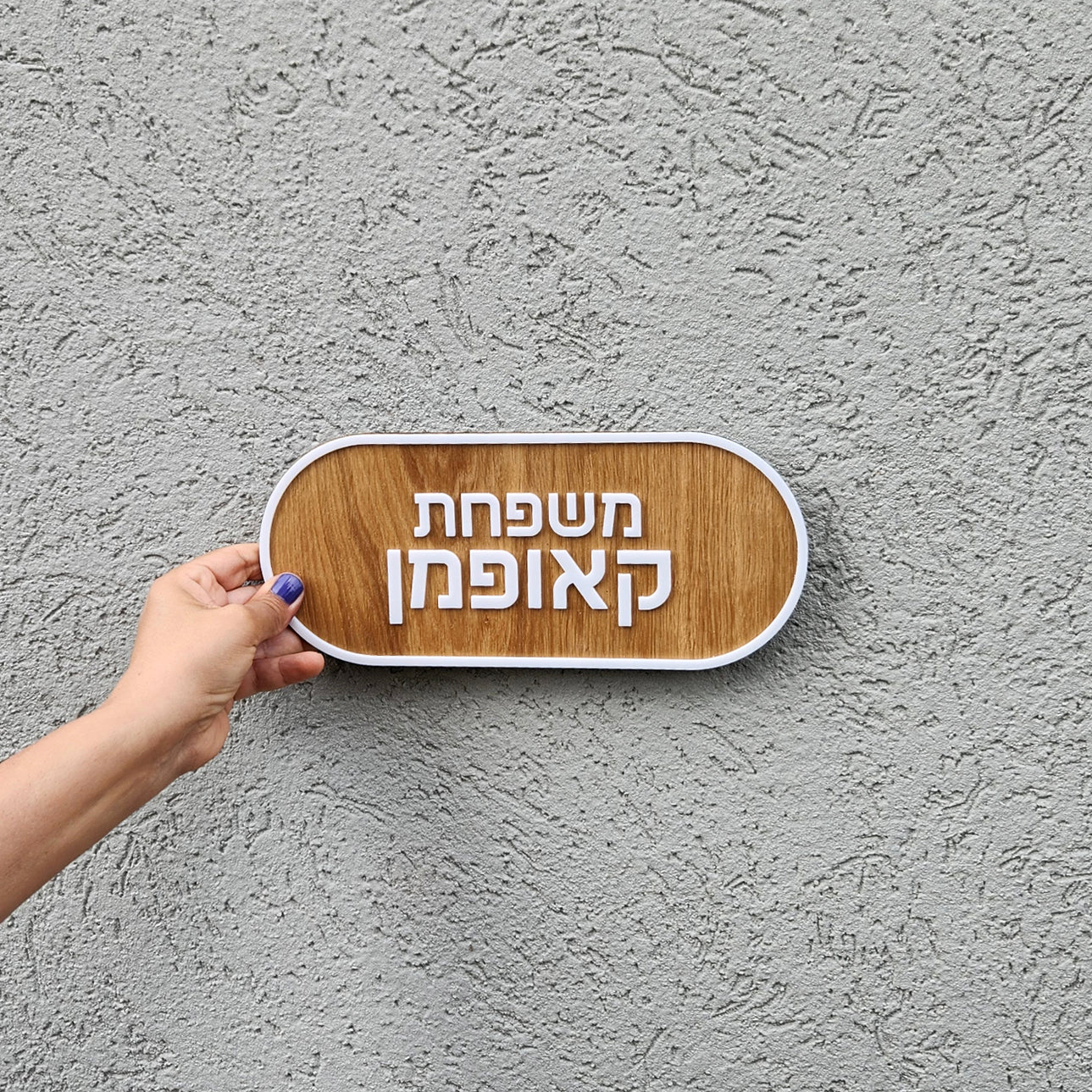 שלט לדלת כניסה לבית מעץ בעיצוב אישי - דגם קאופמן
