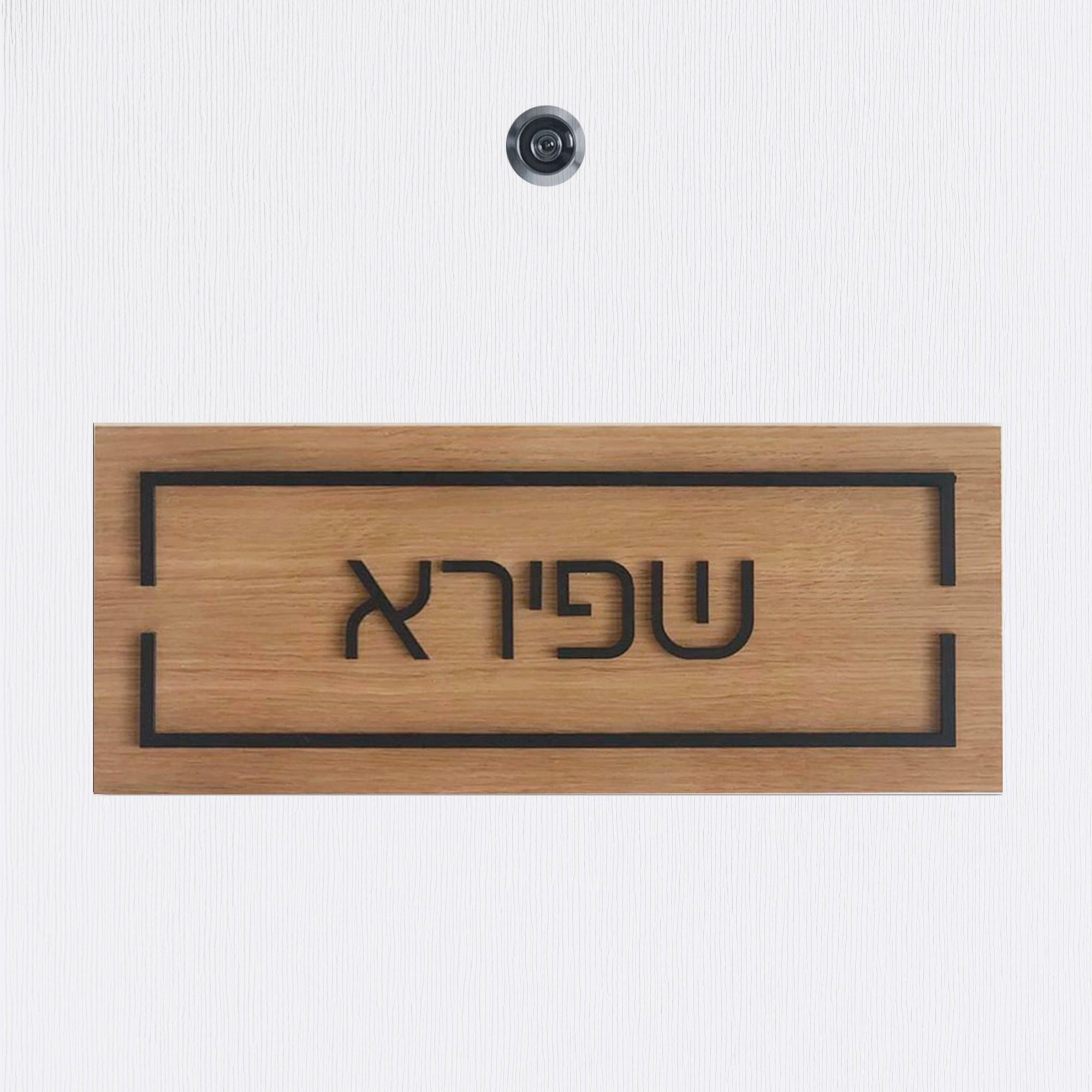 שלט לדלת כניסה לבית מעץ בעיצוב אישי - דגם שפירא