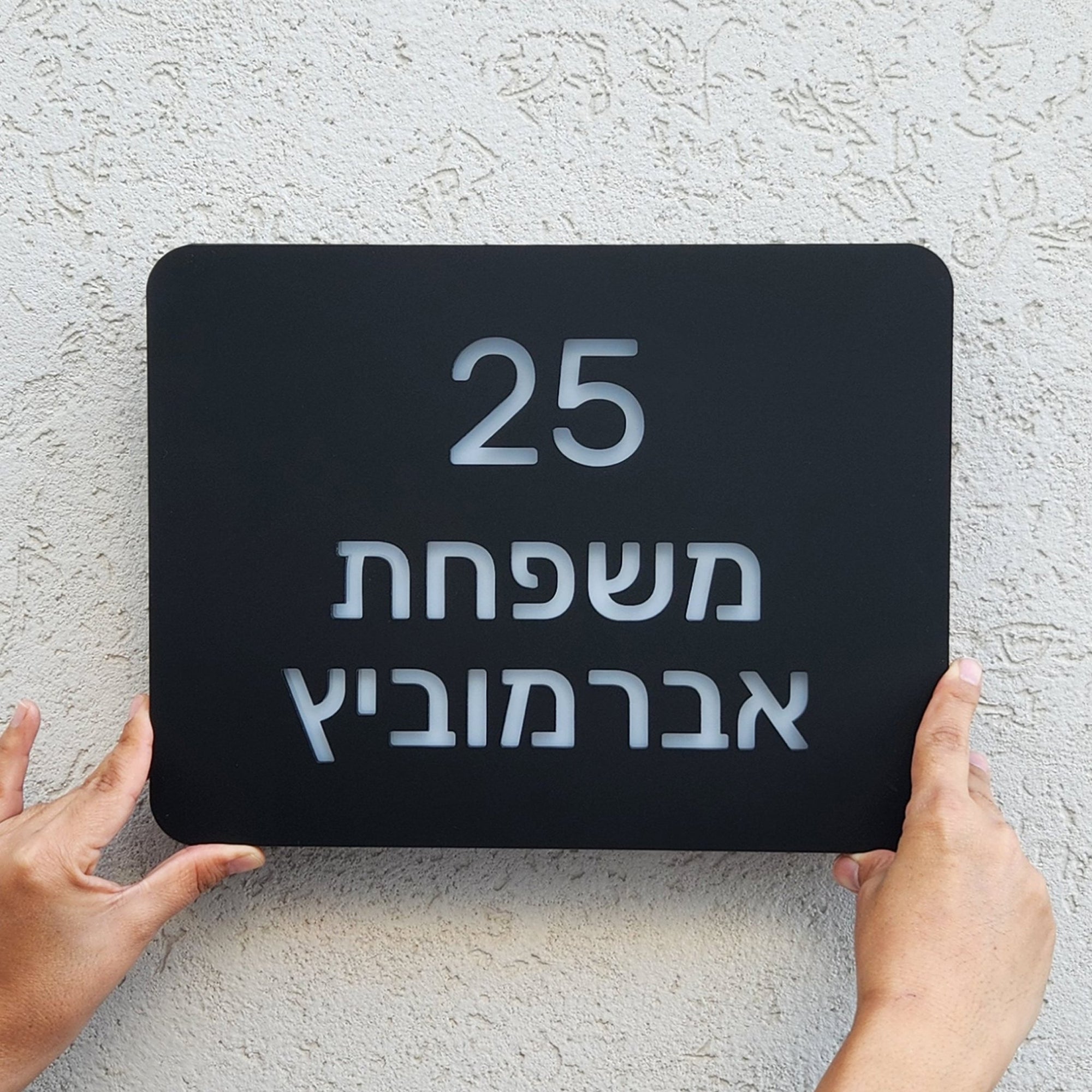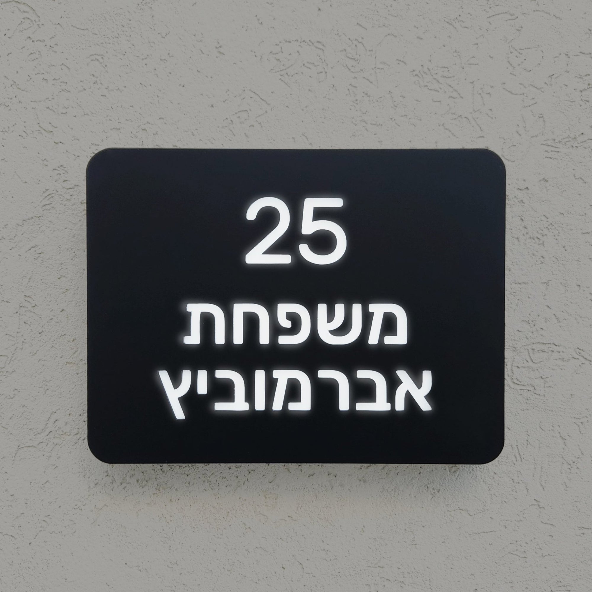 שלט מואר לכניסה לבית פרטי בעיצוב אישי - דגם אברמוביץ