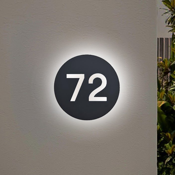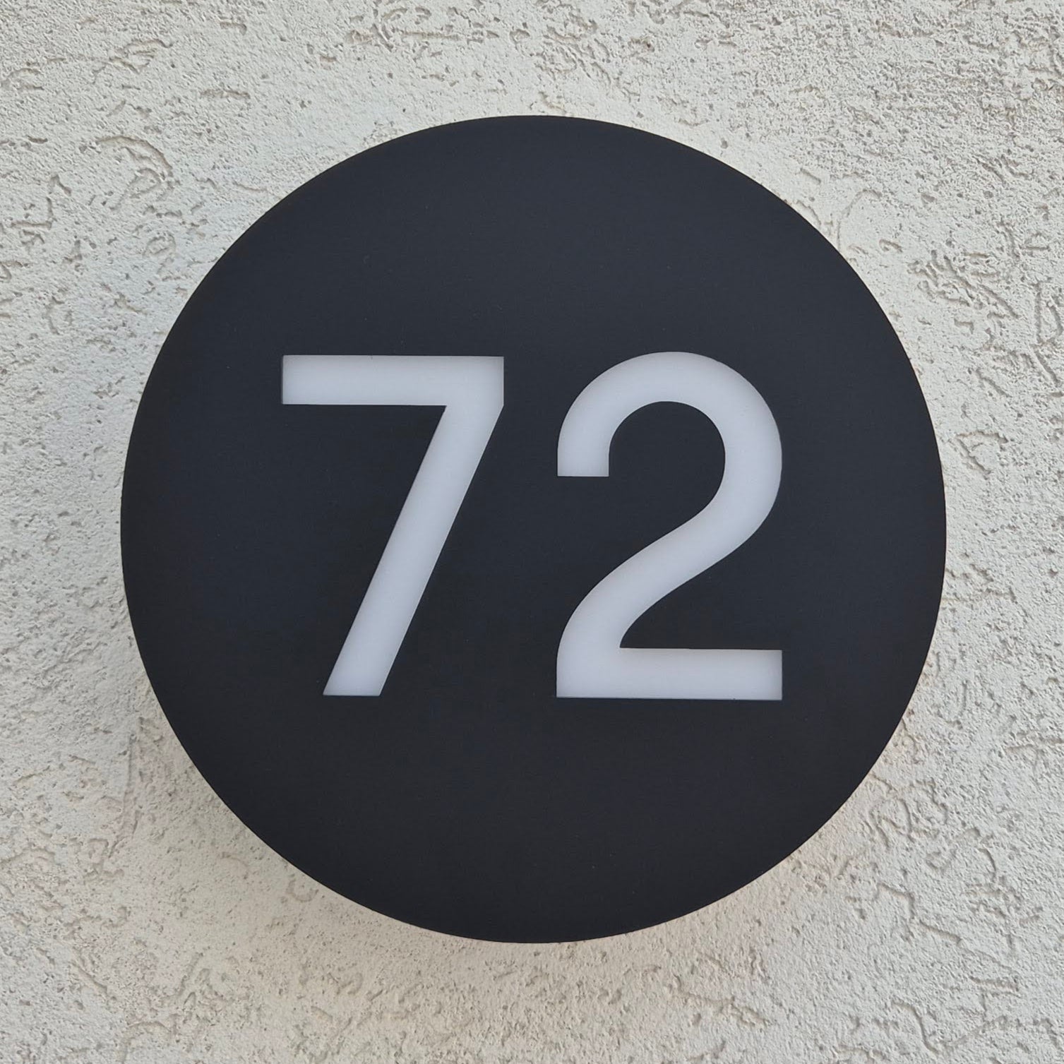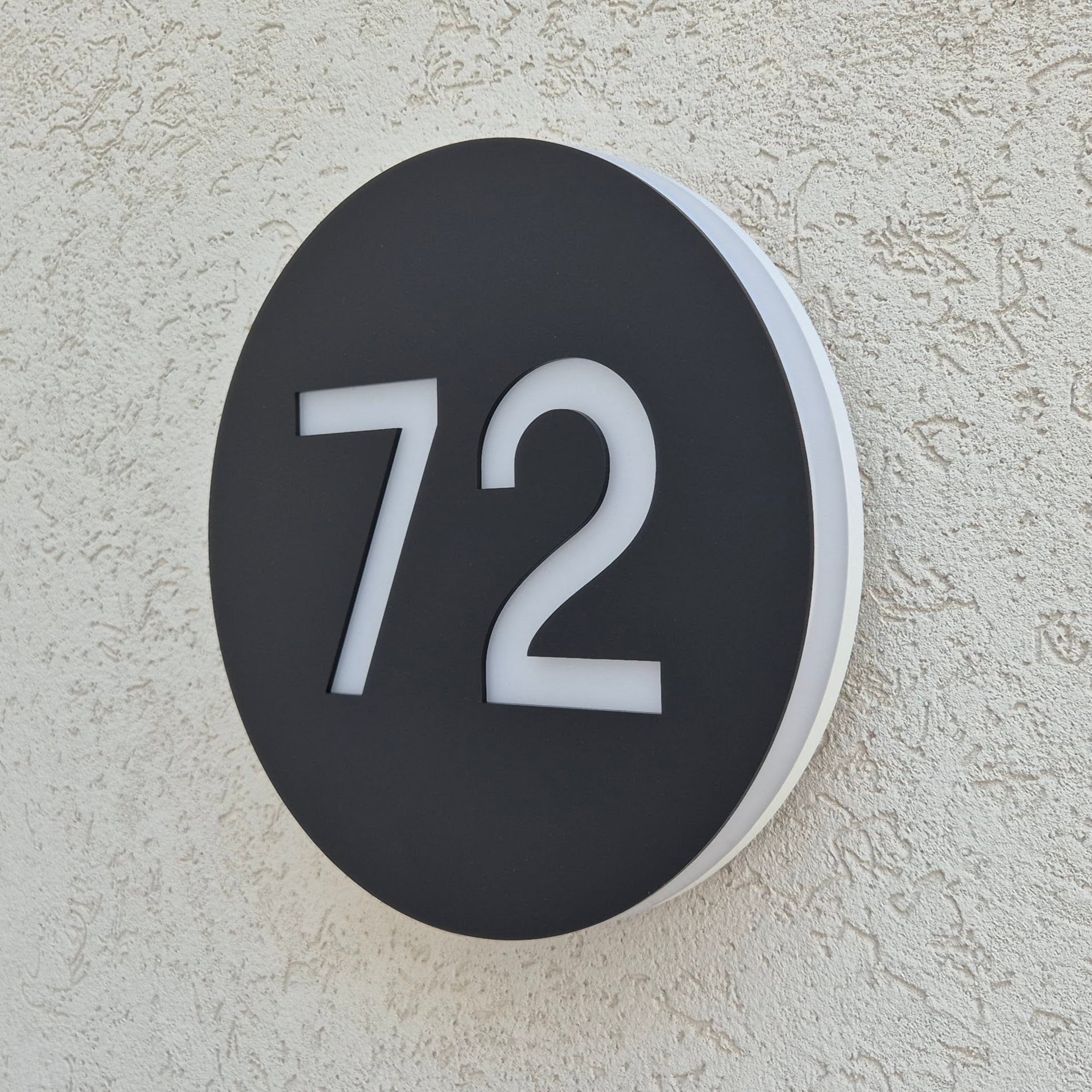 שלט מואר לכניסה לבית פרטי בעיצוב אישי - דגם מספר עגול