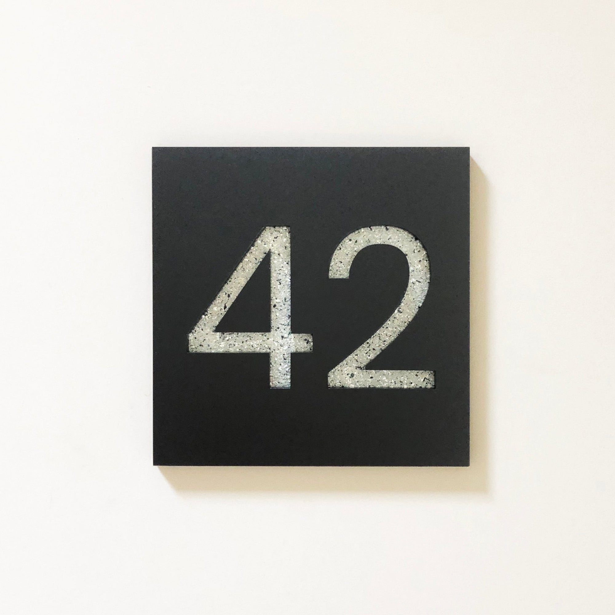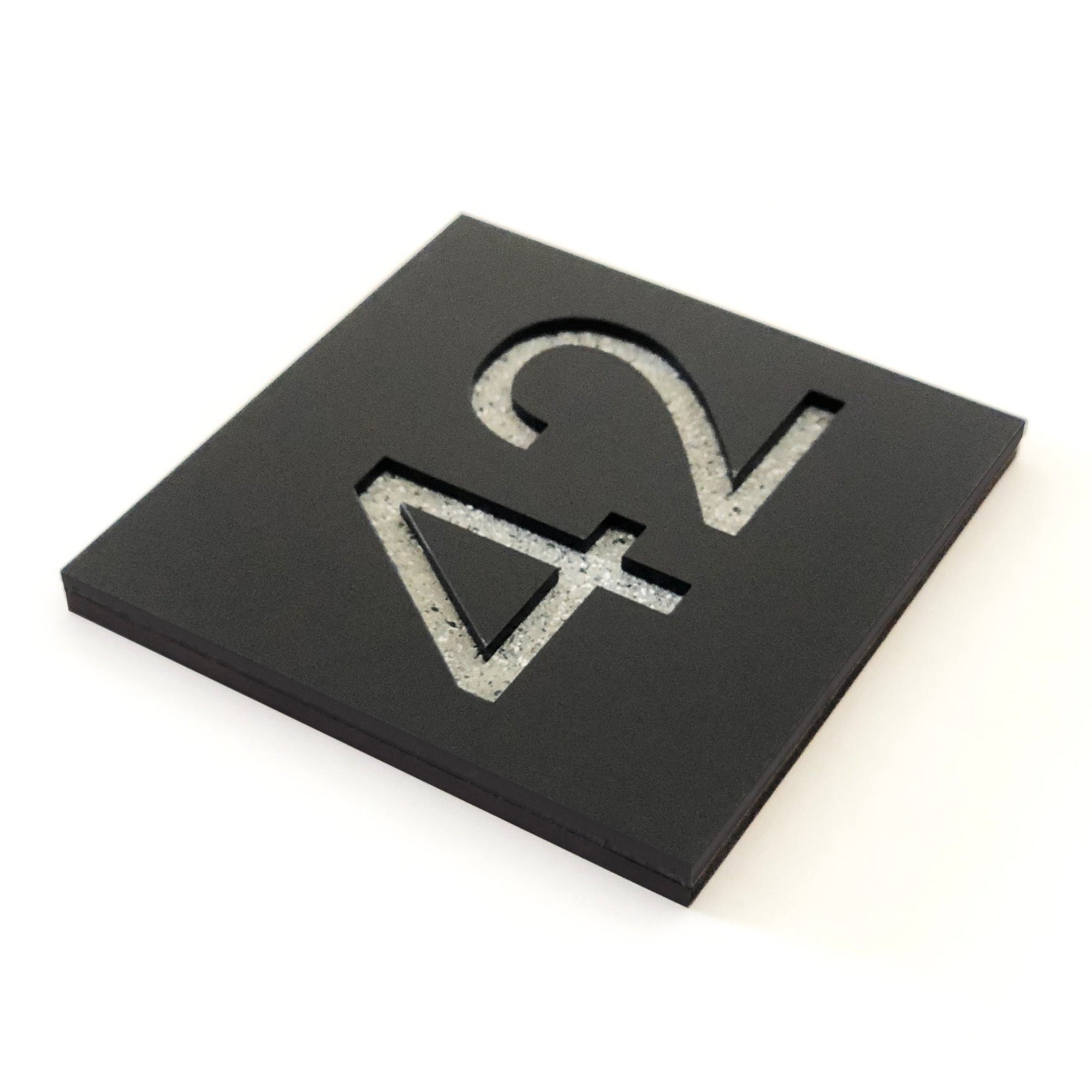 שלט מספר דירה במרקם אבן מגורען עם חיתוך ספרות משכבה בצבע שחור מט