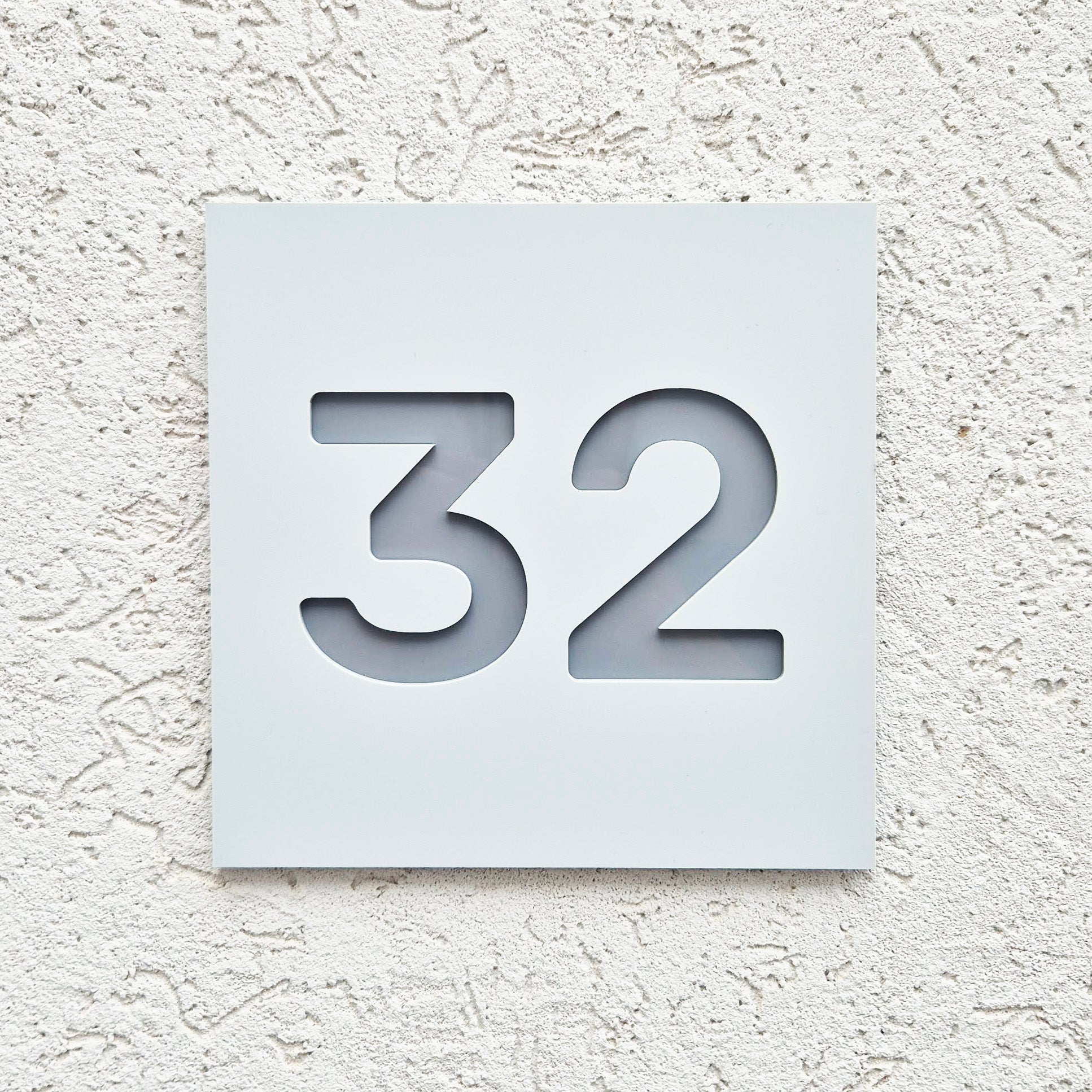 שלט מספר דירה בצבע אפור בהיר דמוי בטון עם חיתוך ספרות ורקע לבחירה